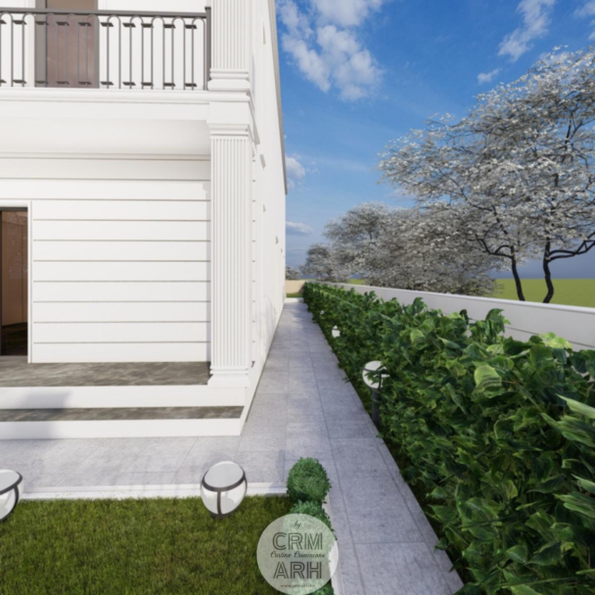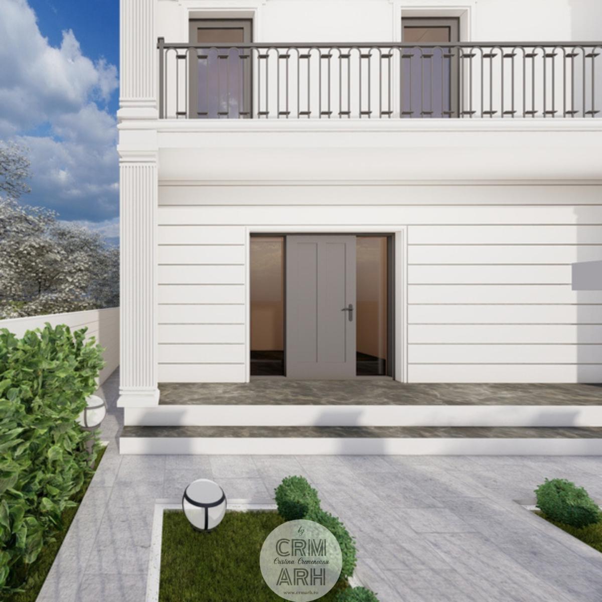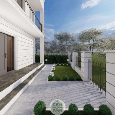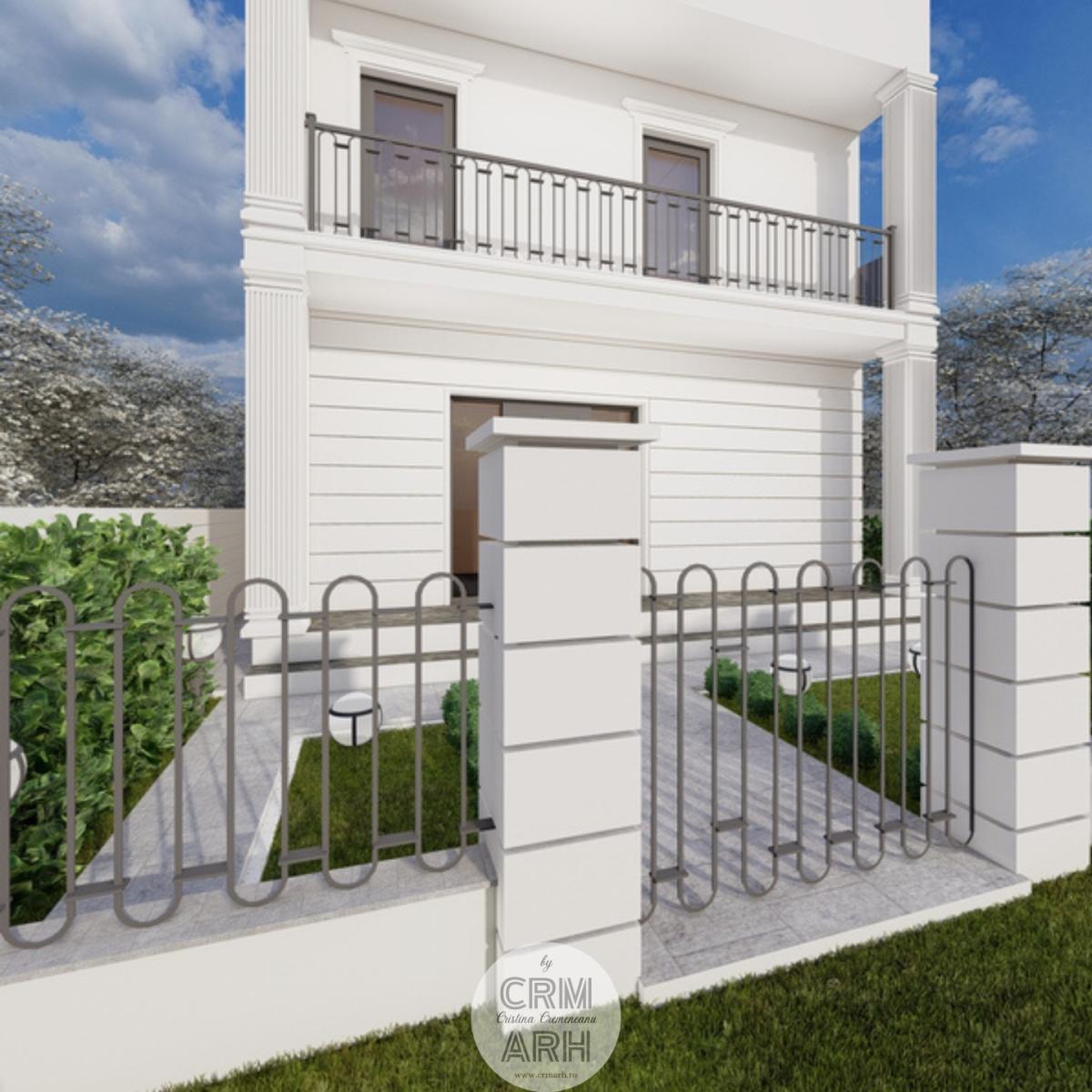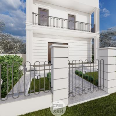 Amenajarea exterioară a clinicii de beauty este realizată în stil neoclasic, caracterizat prin eleganță, simetrie și elemente decorative rafinate. Fațada este accentuată prin utilizarea profilelor decorative de exterior, precum ancadramente pentru ferestre, brâuri orizontale și cornișe, care conferă volum și ritm compoziției arhitecturale. Elementele metalice decorative completează stilul clasic al fațadei și contribuie la crearea unei imagini unitare și reprezentative pentru funcțiunea clădirii. Ansamblul arhitectural urmărește să transmită rafinament, profesionalism și un caracter primitor pentru clientele clinicii.