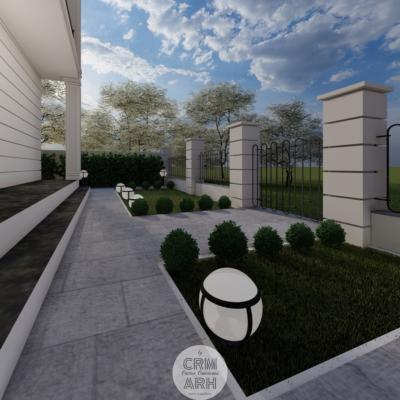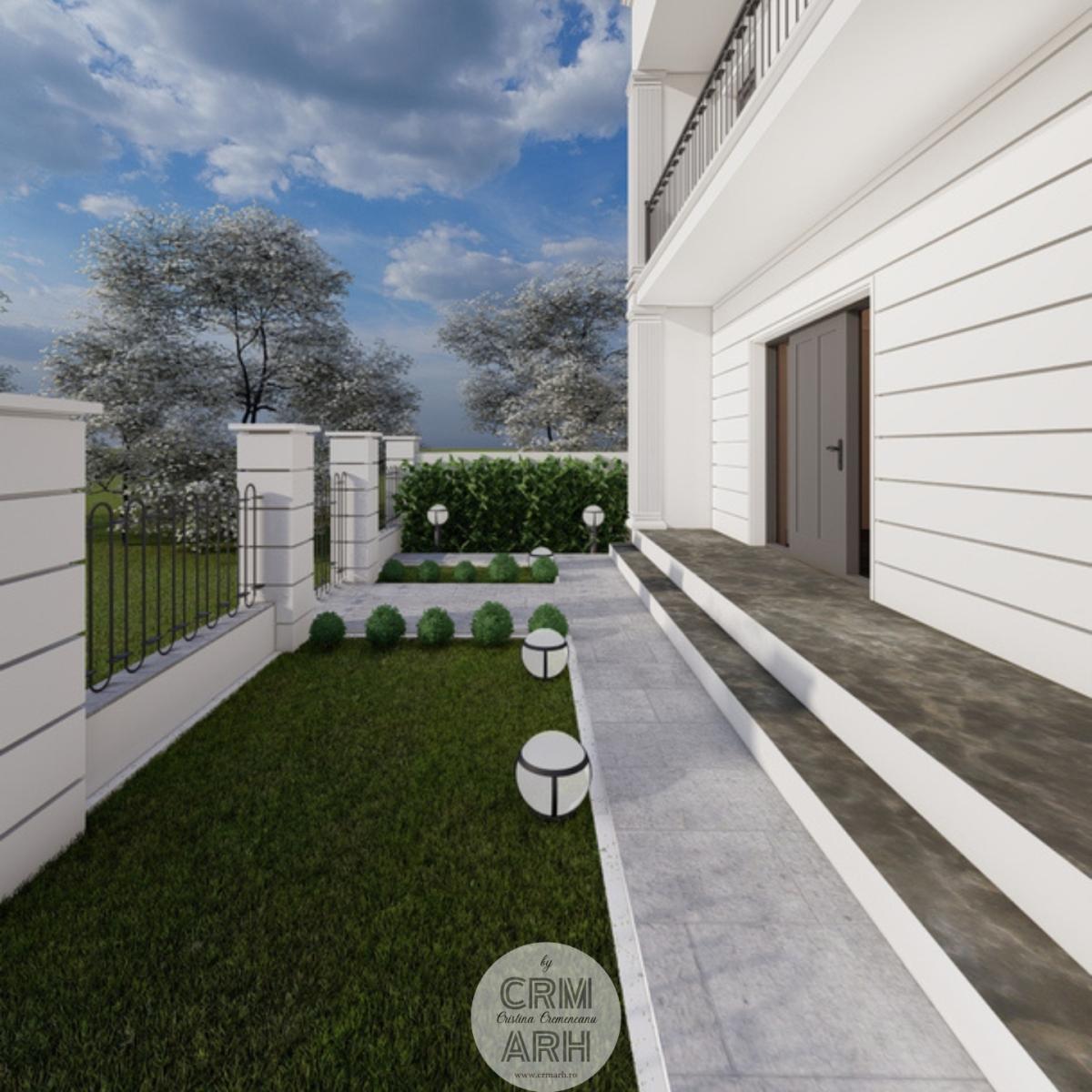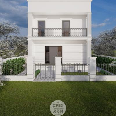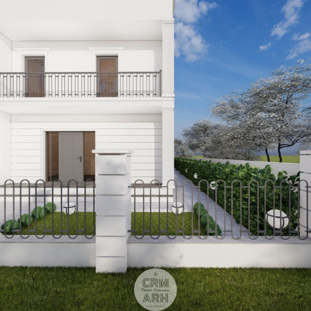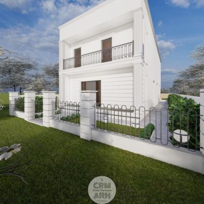 Amenajarea exterioară a clinicii de beauty este realizată în stil neoclasic, caracterizat prin eleganță, simetrie și elemente decorative rafinate. Fațada este accentuată prin utilizarea profilelor decorative de exterior, precum ancadramente pentru ferestre, brâuri orizontale și cornișe, care conferă volum și ritm compoziției arhitecturale. Elementele metalice decorative completează stilul clasic al fațadei și contribuie la crearea unei imagini unitare și reprezentative pentru funcțiunea clădirii. Ansamblul arhitectural urmărește să transmită rafinament, profesionalism și un caracter primitor pentru clientele clinicii.