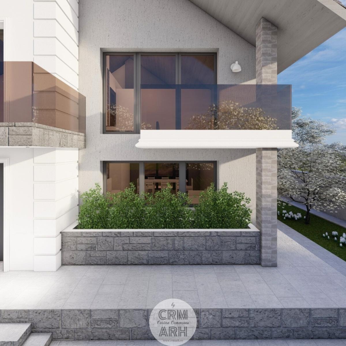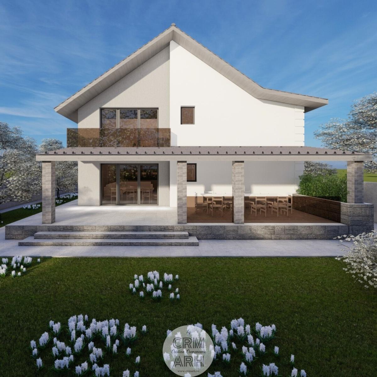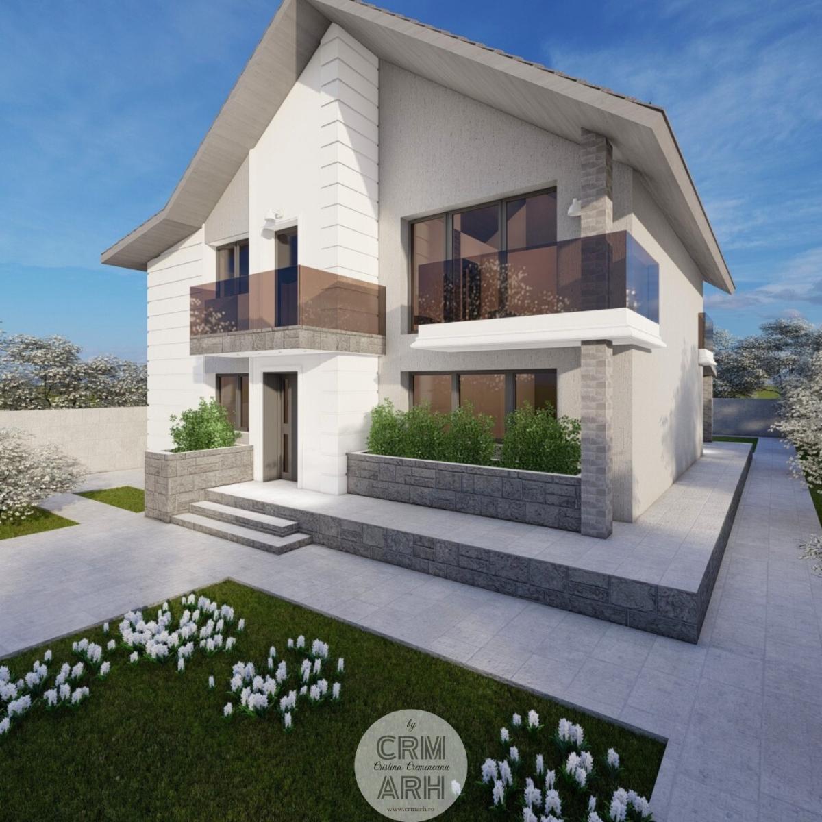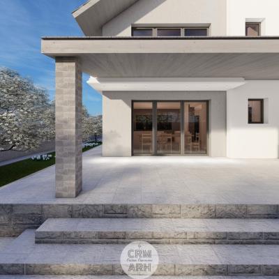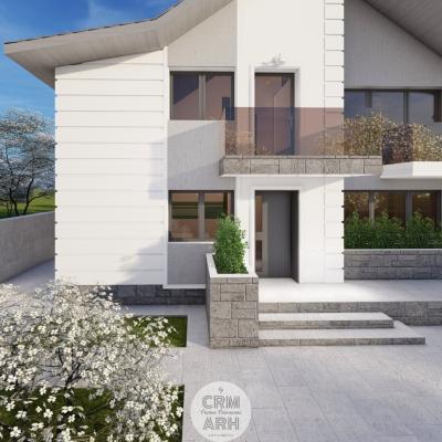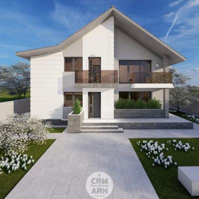 Această locuință parter plus mansardă, proiectată în stil contemporan, îmbină finisaje mixte precum lemn și piatră pentru un aspect modern și elegant. Ferestrele mari permit o iluminare naturală abundentă, iar balustradele din sticlă adaugă un plus de rafinament și transparență. Parterul dispune de un living și bucătărie open space, trei dormitoare și două băi complet echipate. Designul open space oferă fluiditate și spațialitate, creând un mediu ideal pentru socializare și relaxare. Mansarda adaugă un spațiu suplimentar ce poate fi folosit ca birou, zonă de relaxare sau dormitor suplimentar. Finisajele inovative și detaliile arhitecturale moderne contribuie la un aspect de actualitate, făcând această locuință ideală pentru cei care apreciază designul contemporan și funcționalitatea.