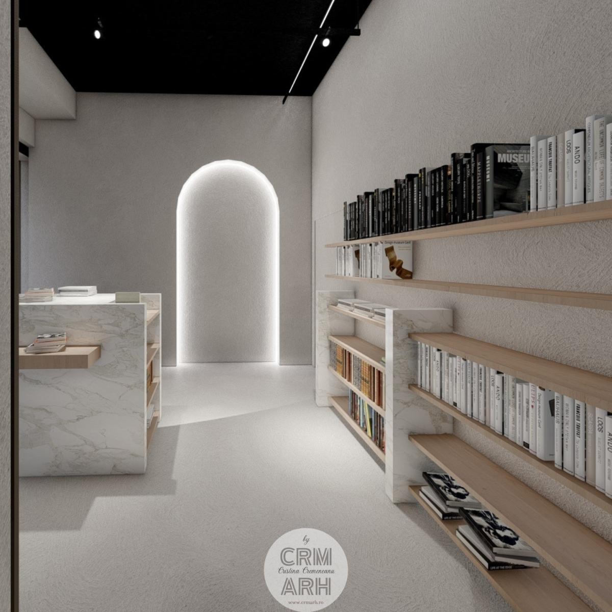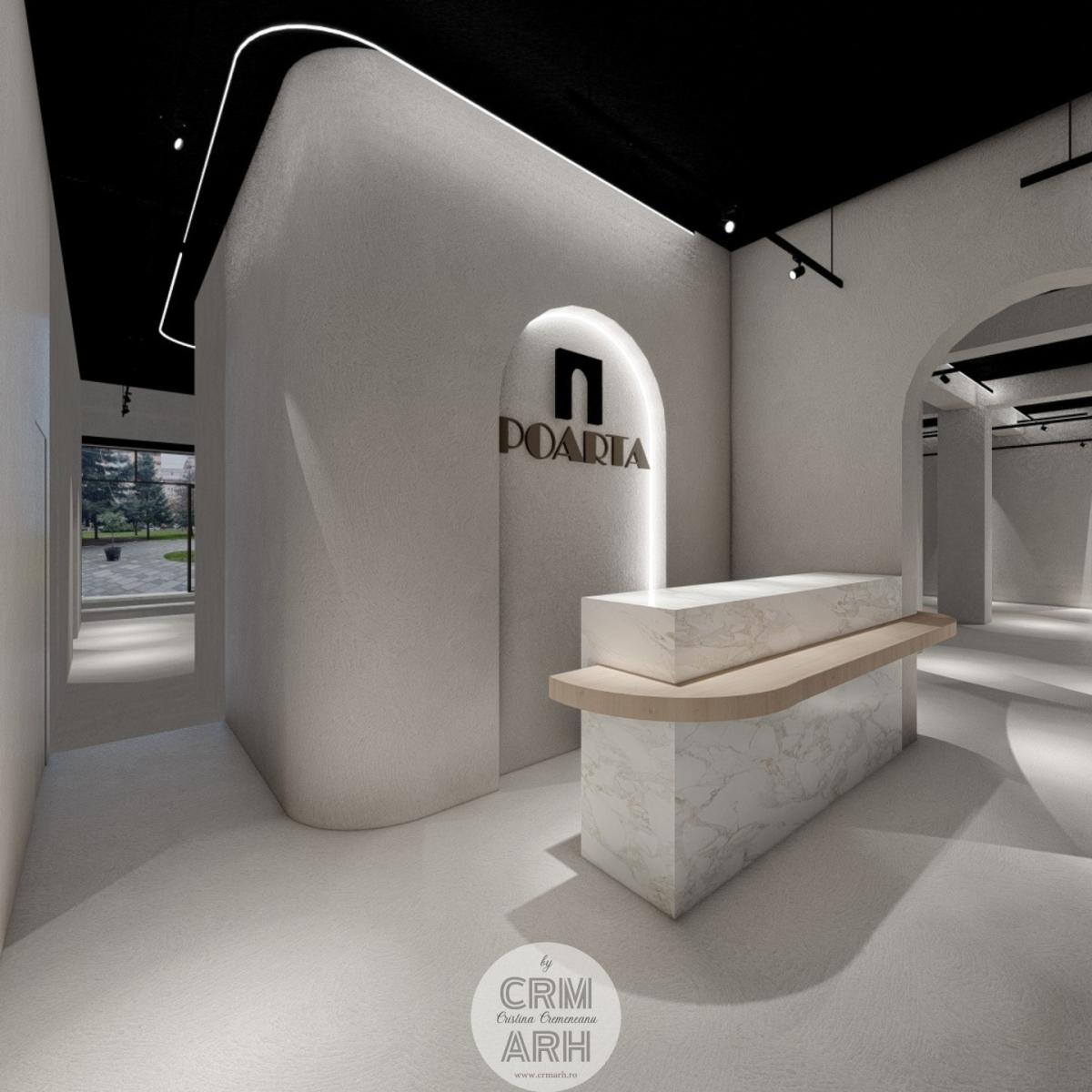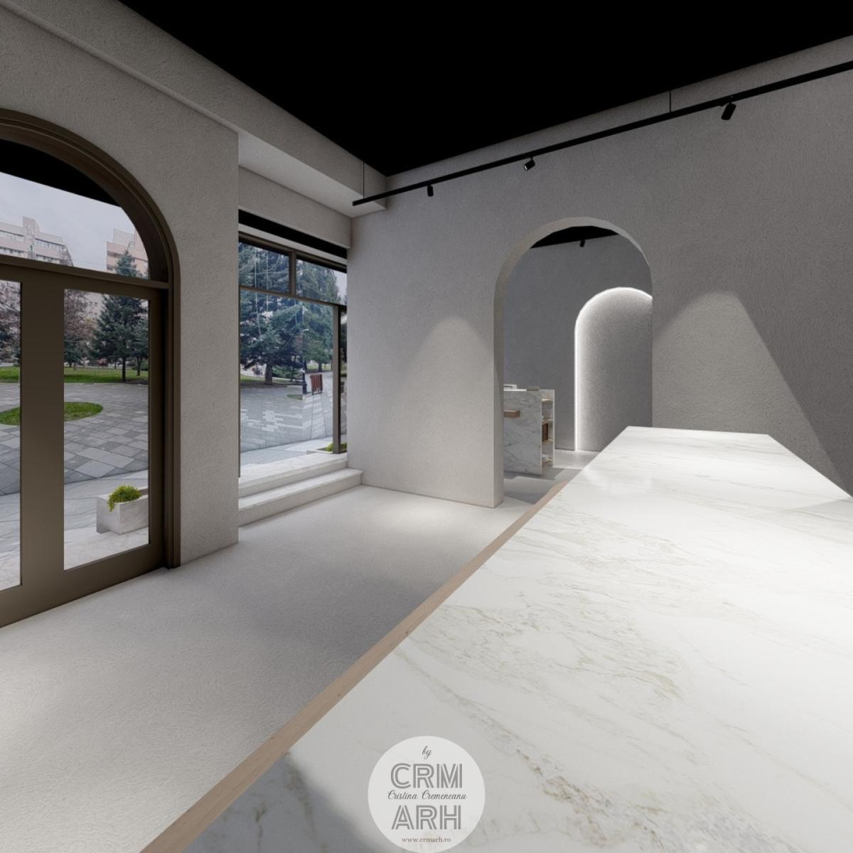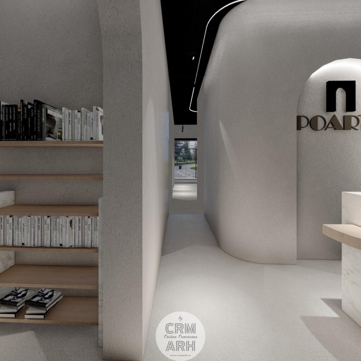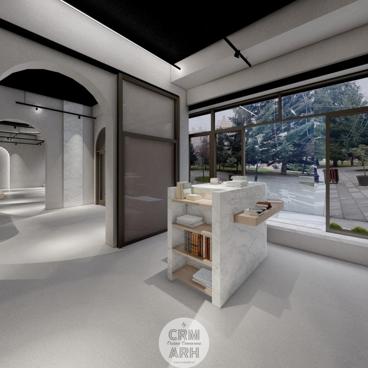 Galeria de artă în stil contemporan este un spațiu aerisit și modern, cu finisaje din microciment care oferă un fundal neutru pentru operele expuse. Arcadele luminate cu LED creează ritm și accente vizuale elegante, iar sinele magnetice suspendate permit expunerea flexibilă și modulară a lucrărilor. Mobilierul minimalist, cu linii simple și materiale neutre, completează designul fără a distrage atenția de la artă. Spațiul este deschis și funcțional, permițând vizitatorilor să se bucure de opere din multiple unghiuri și să experimenteze o atmosferă sofisticată și contemporană.