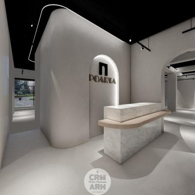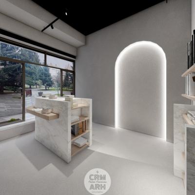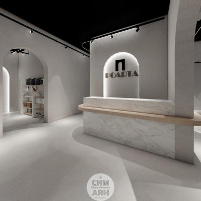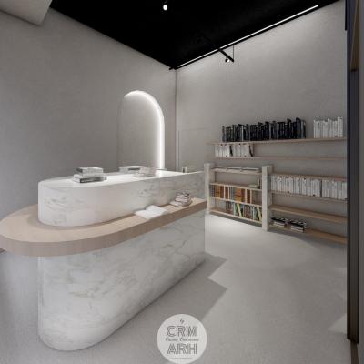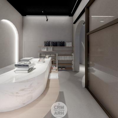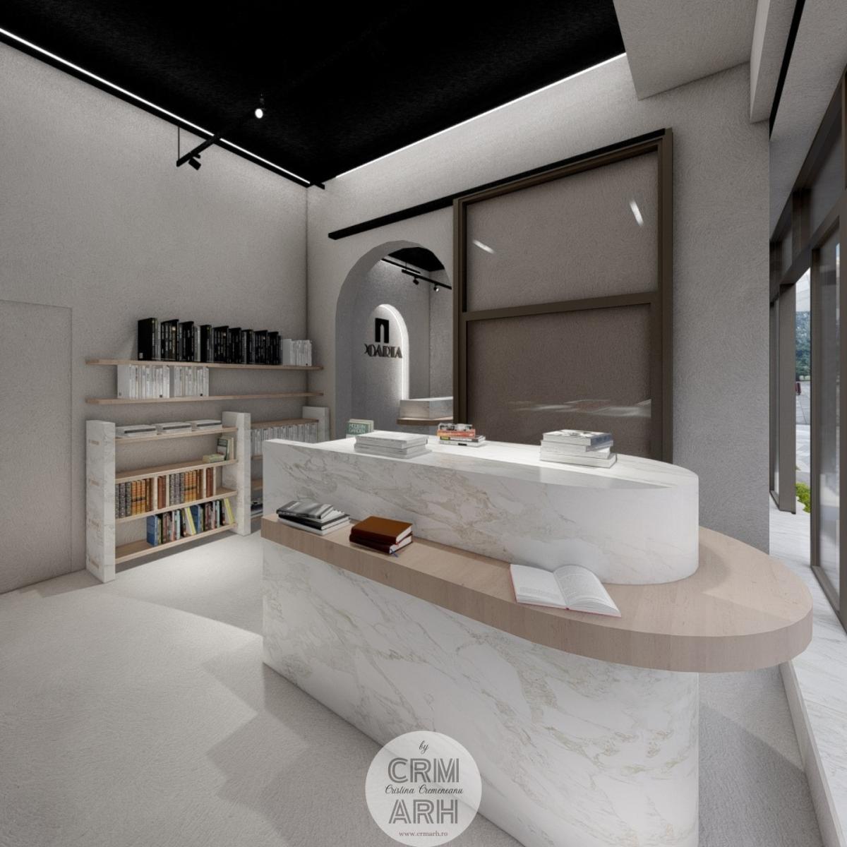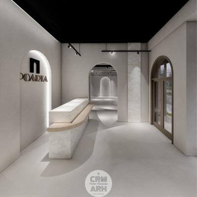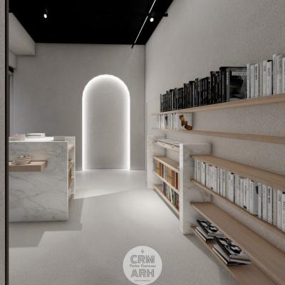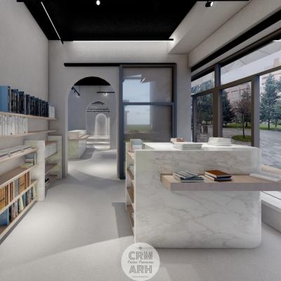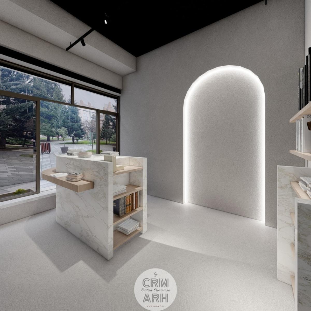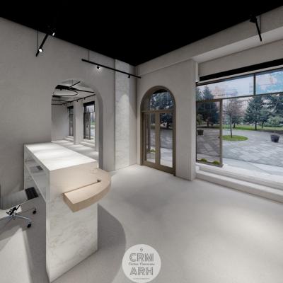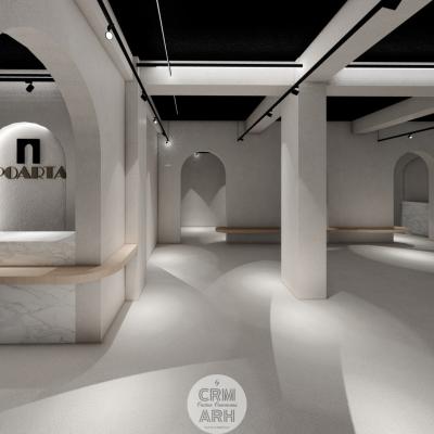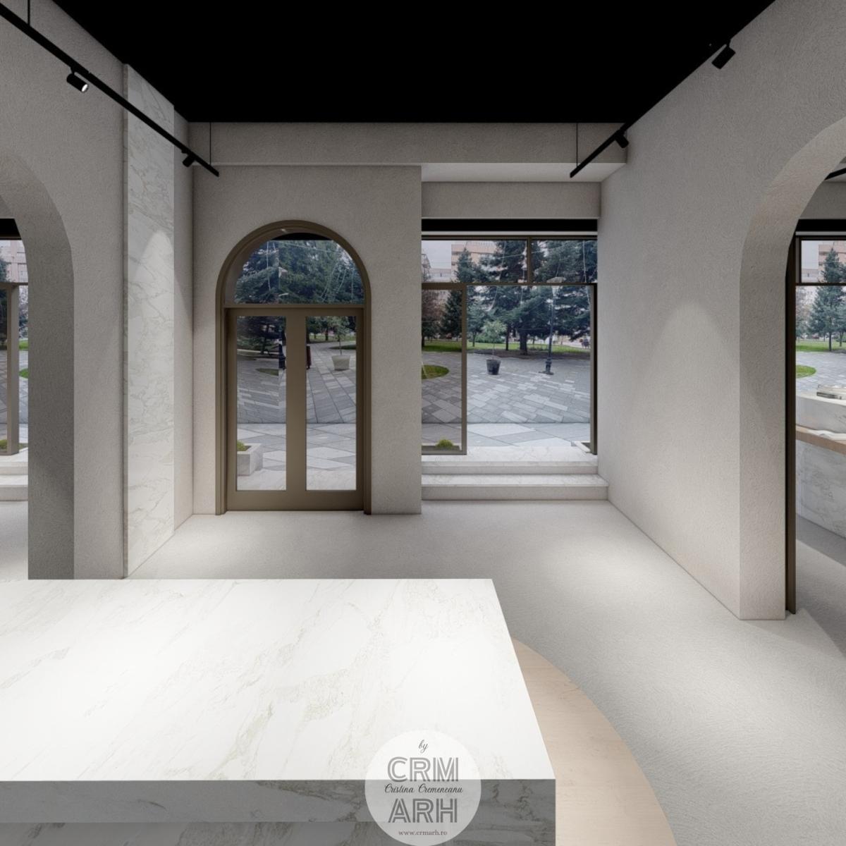 Galeria de artă în stil contemporan este un spațiu aerisit și modern, cu finisaje din microciment care oferă un fundal neutru pentru operele expuse. Arcadele luminate cu LED creează ritm și accente vizuale elegante, iar sinele magnetice suspendate permit expunerea flexibilă și modulară a lucrărilor. Mobilierul minimalist, cu linii simple și materiale neutre, completează designul fără a distrage atenția de la artă. Spațiul este deschis și funcțional, permițând vizitatorilor să se bucure de opere din multiple unghiuri și să experimenteze o atmosferă sofisticată și contemporană.