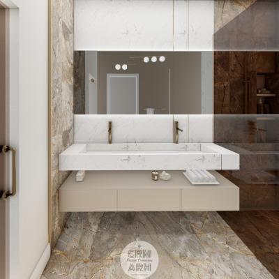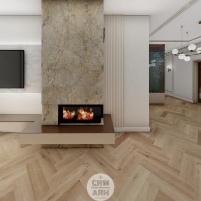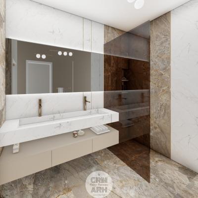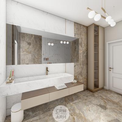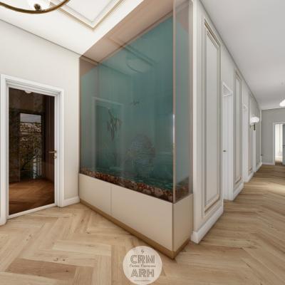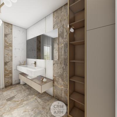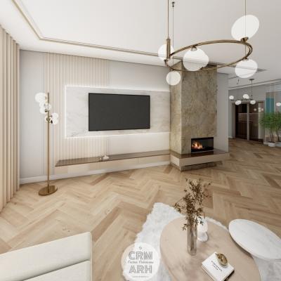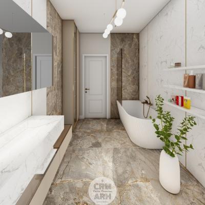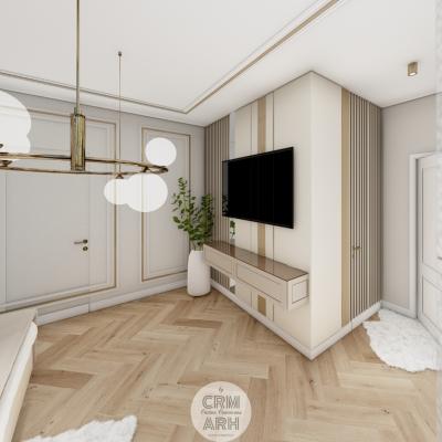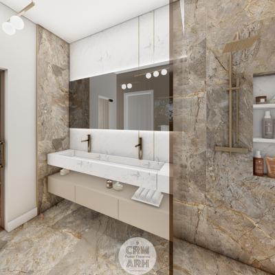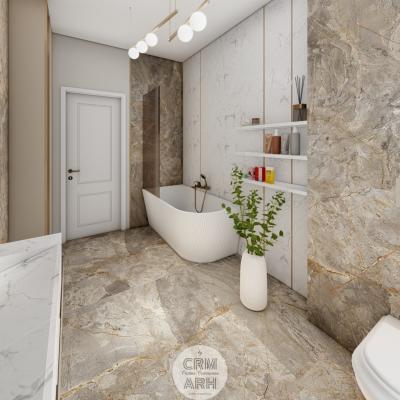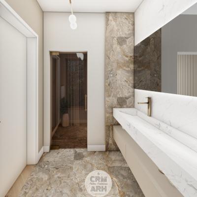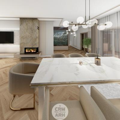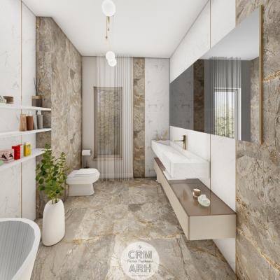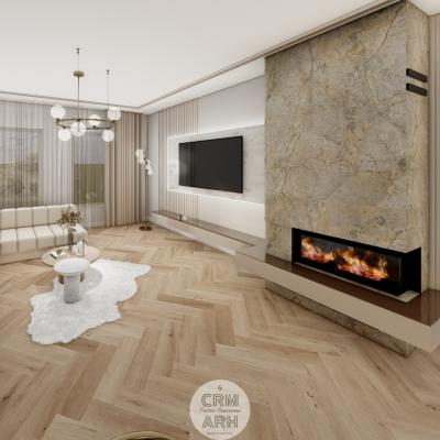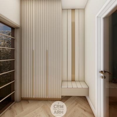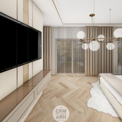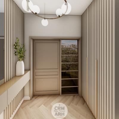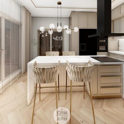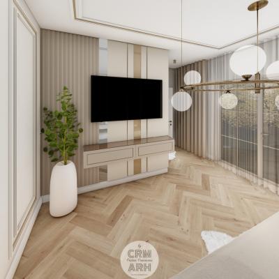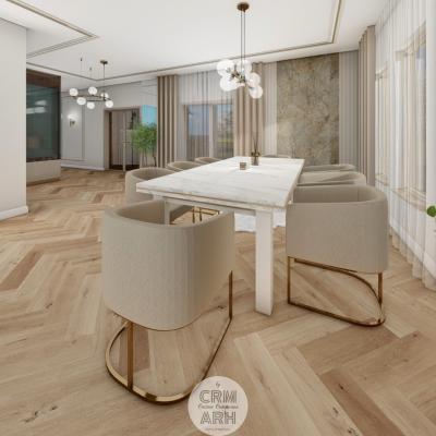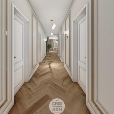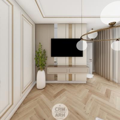 Un design de casă elegantă în nuanțe de bej și alb emană rafinament și echilibru, fiind o alegere atemporală care aduce luminozitate și armonie spațiilor. Pereții în tonuri calde de bej deschis sau crem sunt puși în valoare de profile decorative clasice albe, care conturează subtil pereții, tavanele și ușile. Aceste detalii adaugă profunzime și eleganță fără a încărca vizual. Podelele din parchet deschis, cu texturi naturale, completează perfect paleta cromatică, iar textilele fine — catifea, in sau bumbac premium — întregesc atmosfera sofisticată. Elementele moderne precum riflajele din lemn natur sau vopsite alb aduc un contrast rafinat și o notă de actualitate, în timp ce oglinzile decorative amplifică lumina și spațiul, oferind reflexii spectaculoase.